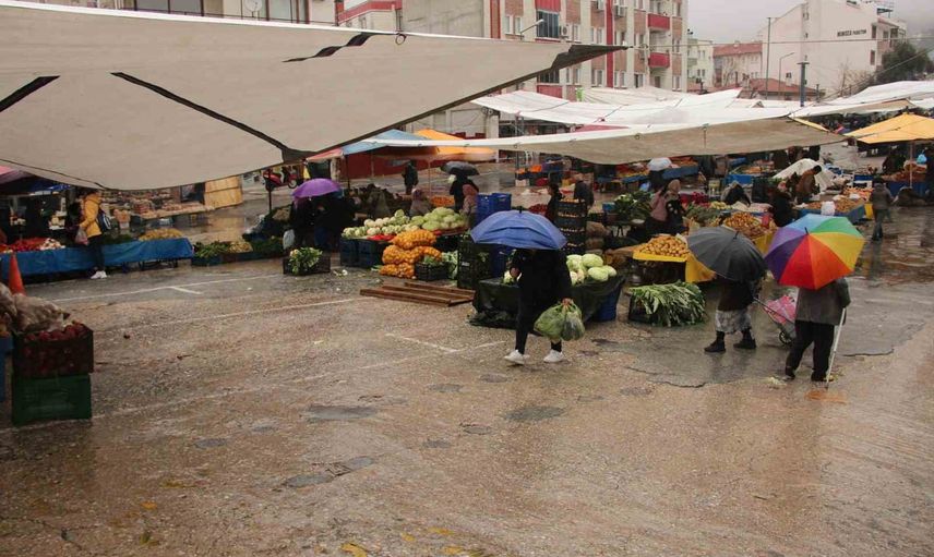 Günlerdir etkisini artırarak sürdüren sağanak yağış, Menteşe Perşembe Pazarı'ndaki tezgahların seyrekleşmesine neden oldu. Alışılmış hareketliliğin azaldığı pazarda birçok esnaf tezgâhını açmazken, alanın bir bölümü boş kaldı.