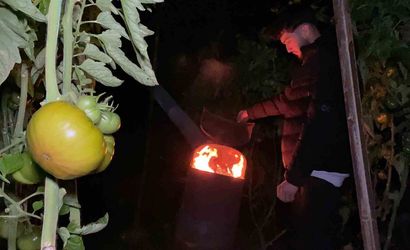 METEOROLOJİNİN ZİRAİ DON UYARISINDA BULUNDUĞU BÖLGELER ARASINDA YER ALAN ERDEMLİ İLÇESİNDE 200 RAKIMDA TERMOMETRE EKSİ 1 DERECEYİ GÖRÜNCE ÖRTÜ ALTI ÜRETİM YAPILAN SERALARDA DOMATESLERİ KORUMAK AMACIYLA SOBALAR YAKILDI.