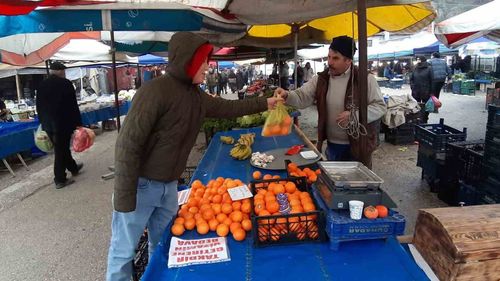Mudurnu'da pazar esnafı, 2025-2026 eğitim yılının ilk döneminin sona ermesiyle takdir belgesi getiren öğrencilere mandalina, portakal ve muz hediye etti.