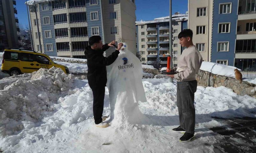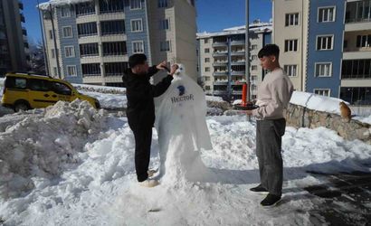 Muş’ta günlerdir aralıklarla etkili olan yoğun kar yağışı günlük hayatı zorlaştırırken, bazı esnaflar karı eğlenceye dönüştürdü. Kent merkezinde yaklaşık 6 yıldır kuaförlük yapan Enes Baltık ile Nurullah Kanşıray, iş yerlerinin önünde yaptıkları kardan adam üzerinde normal bir müşteriye uygulanan tüm berber işlemlerini gerçekleştirdi.