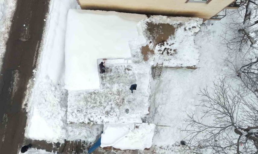 Mahalle sakinleri, olası çökmeleri önlemek amacıyla sabahın erken saatlerinden itibaren küreklerle dam temizliği yaptı. Vatandaşlar, büyük bir dikkatle karları damlardan aşağı indirerek yapıların güvenliğini sağlamaya çalıştı.