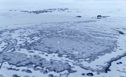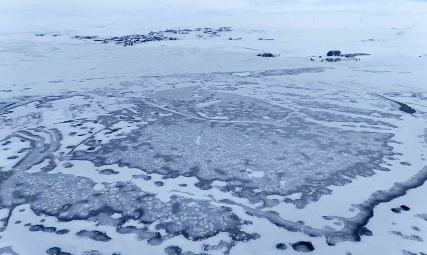 Gölün yüzeyinde oluşan farklı desenler havadan görüntülendi. Göle kıyısı bulunan Dilburnu köyüne giden doğaseverler ve fotoğrafçılar, oluşan eşsiz manzarayı fotoğrafladı.