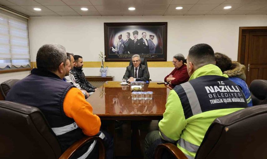 Nazilli Belediyesi'nde görev yapan saha personelleri, Belediye Başkanı Dr. Ertuğrul Tetik'e belediye bünyesinde gerçekleştirilen çalışma iyileştirmeleri dolayısıyla teşekkür etti.