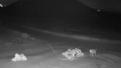 Nevşehir Hacıbektaş'ın Kayaaltı köyünde aç kalan kurtların akşam saatlerinde köye inmesi, iki kurdun güvenlik kamerasına yansıması görüntülendi.