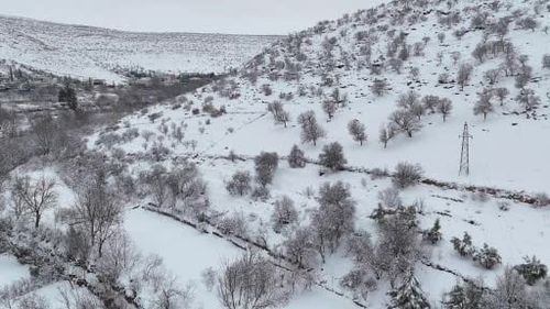 Mardin'in Nusaybin ilçesindeki Akarsu Mahallesi, karla kaplanan damları ve doğal dokusuyla dron görüntülerinde kışın eşsiz güzelliğini sergiledi.