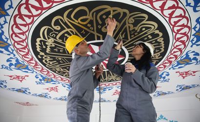 Ordu'da yaşayan nakkaş Ersin ve Kübra Saraç çifti, 6 yıldır cami duvarlarını çeşitli motiflerle adeta dantel gibi işliyor.
