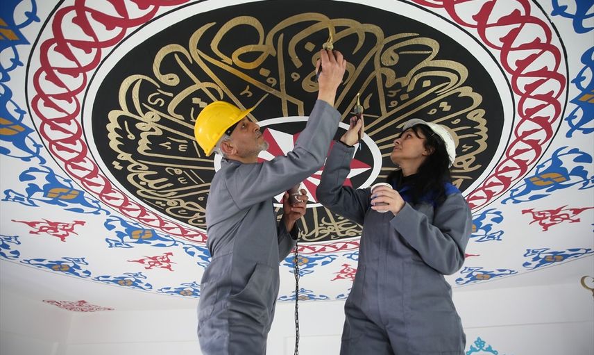 Ordu'da Nakkaş Çift, Cami Duvarlarını Sanat Eseri Gibi Süsliyor