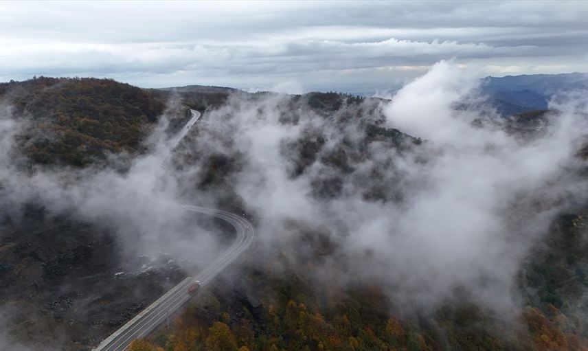 Ordu'nun yüksek kesimlerinde etkili olan sis, sonbaharın canlı tonlarıyla birleşerek görenleri etkiledi.