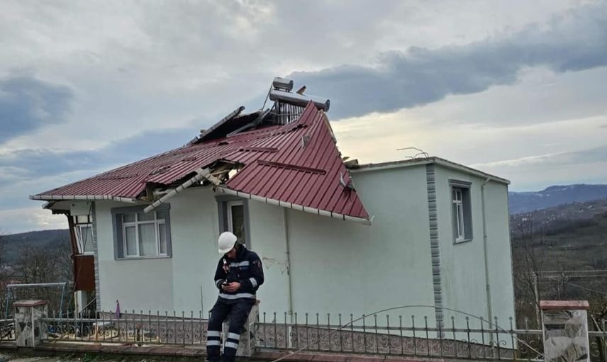 Ordu’nun Kumru ilçesinde sabah saatlerinde etkili olan fırtına, çatı uçmasına ve ağaç devrilmesine yol açtı.