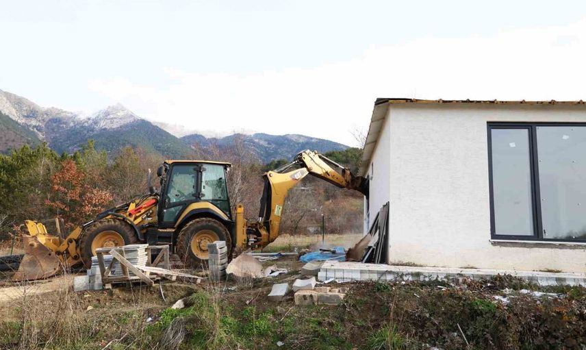 Yıkım sırasında bölgede jandarma ve zabıta ekipleri geniş güvenlik önlemleri alırken, tedbir amaçlı sağlık ekipleri de alanda hazır bulundu. Belediye yetkilileri, tarım arazilerini ve doğal alanları korumaya yönelik denetimlerin kararlılıkla süreceğini vurguladı.