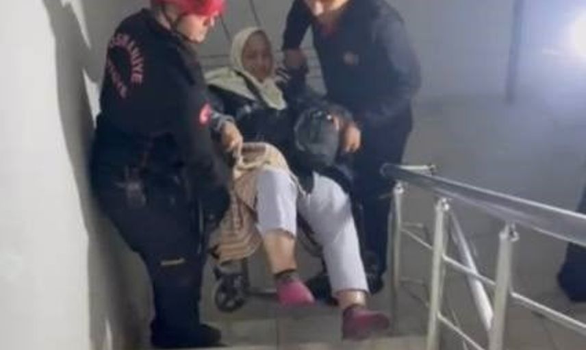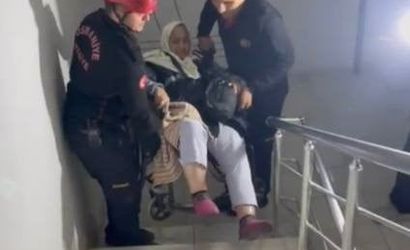 Ekipler, iki personel eşliğinde tekerlekli sandalyedeki Gözükara'yı merdivenlerden dikkatle taşıyarak ikinci kattaki dairesine güvenli şekilde ulaştırdı. Bu sırada bir kadın komşu el feneriyle ekiplerin çalışmalarına ışık tutarak yardımcı oldu.