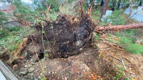 Düziçi'nde iki gündür süren sağanak, kar ve fırtına sonucu Karacaoğlan Mahallesi mezarlığındaki dev çamlar kökünden sökülüp mezarlara ve yola zarar verdi.