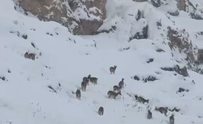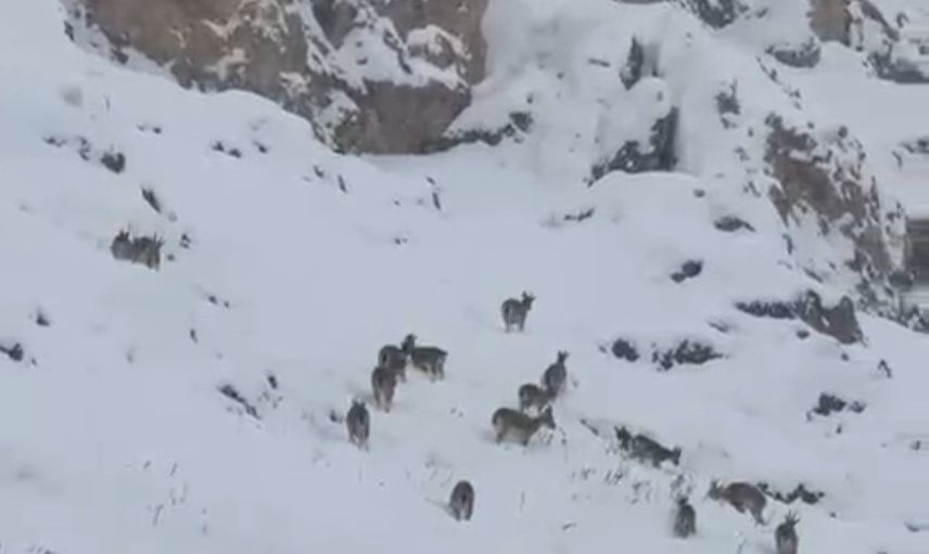 Palu Kalesi'nde Kar Üzerinde Sürü Halinde Dağ Keçileri Görüntülendi