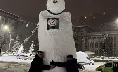 Rize’nin Güneysu ilçesi, dört gündür devam eden kar yağışıyla birlikte gençlerin eğlenceli bir etkinliğine sahne oldu. Güneysu Millet Bahçesi’nde bir araya gelen gençler, 4,5 metre uzunluğunda dev bir kardan adam yapmak için kolları sıvadı.