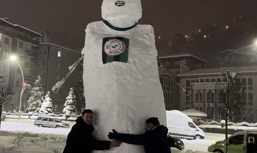 Rize'nin Güneysu ilçesinde etkili olan kar yağışını fırsat bilen gençler, yaklaşık 7 saatlik çalışma sonucunda 4,5 metre boyunda kardan adam yaptı.