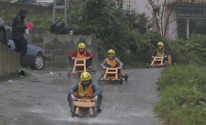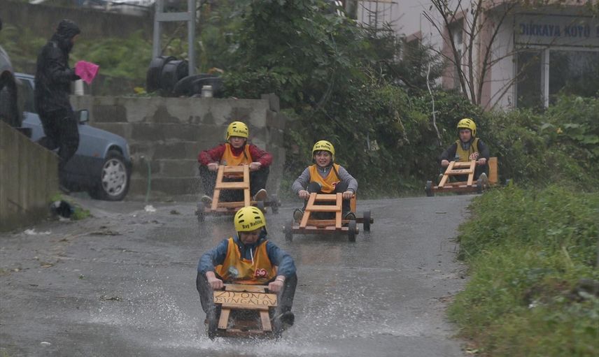 Rize'nin Çamlıhemşin ilçesine bağlı Dikkaya köyünde "Laz Ralli Tahta Araba Yarışları"nın 15'incisi düzenlendi. Yağmur altında gerçekleşen yarışta, gençler, yaşlılar ve çocuklar kategorilerinde 57 kişi mücadele etti. Yaşlılar ve çocuklar 300 metre, gençler ise 1 kilometrelik parkurda kıyasıya yarıştı.