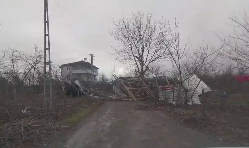 Sakarya'da Şiddetli Rüzgar Hendek'te Ağaçları ve Barakayı Devrdi