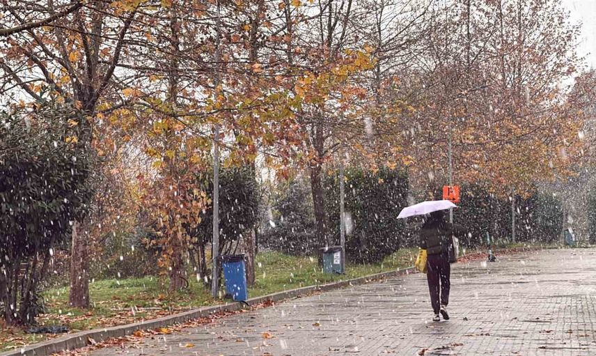 Sakarya’da yüksek kesimlerde başlayan kar, şehir merkezinde yağmurla karışık şekilde seyrederken üniversite kampüsünde kısa süreli bir beyaz örtü oluşturdu.