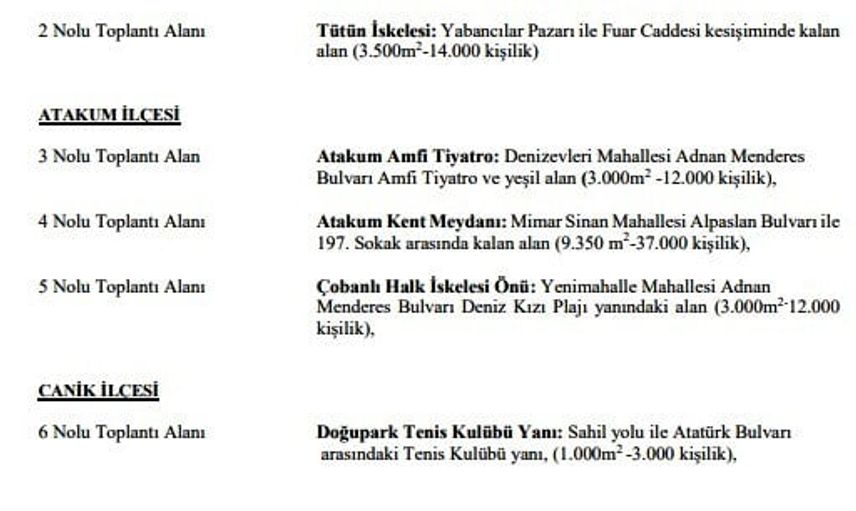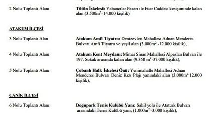 SAMSUN (İHA) – Samsun Valiliği, 2026 yılında kentte kullanılacak toplantı alanları, gösteri yürüyüşü güzergahları ve afiş-pankart asma yerleri açıkladı. Düzenleme, il genelinde izin ve güvenlik süreçlerinin şeffaf yürütülmesini hedefliyor. İlkadım: Cumhuriyet Meydanı, Tütün İskelesi. Atakum: Atakum Amfi Tiyatro, Atakum Kent Meydanı, Çobanlı Halk İskelesi. Canik: Doğupark Tenis Kulübü yanı. Tekkeköy: Tekkeköy Belediyesi arkası açık otopark alanı. İlkadım: Cumhuriyet Caddesi, sahil yolu 1'inci kısım ve 2'nci kısım. Atakum: Adnan Menderes Bulvarı 1 ve 2'nci kısım, İsmet İnönü Bulvarı. Tekkeköy: Tekkeköy Belediyesi arkasındaki açık otoparka bağlanan yol. Afiş ve pankartlar, ilk toplanma alanı, yürüyüş güzergâhı üzeri, toplantı alanı çevresi ile Büyükşehir Belediye Başkanlığı ve ilçe belediye başkanlıklarınca (Atakum, Canik, İlkadım ve Tekkeköy Belediye Başkanlıkları) belirlenen alanlarda asılabilecek. SAMSUN VALİLİĞİ, 2026 YILINDA KULLANILACAK TOPLANTI ALANLARI, GÖSTERİ YÜRÜYÜŞÜ GÜZERGÂHLARI İLE AFİŞ VE PANKART ASMA YERLERİNİ BELİRLEDİ.Toplantı Alanları