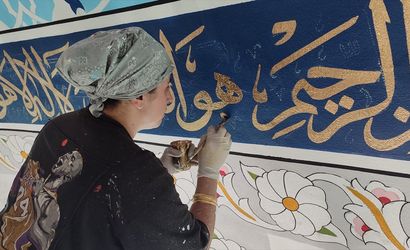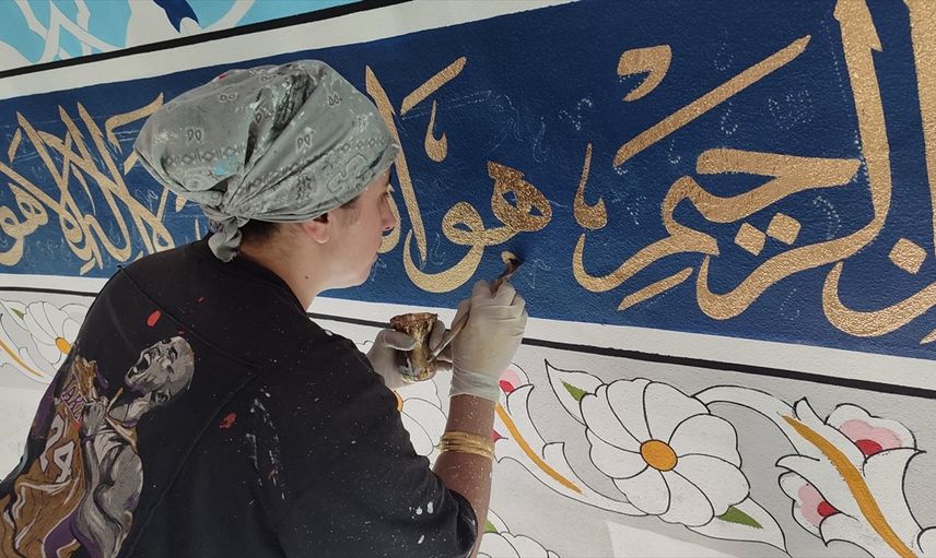 Samsun'da yaşayan kadın nakkaşlar Aynur Şeker, Nazlı Cezan ve Işık Kahrıman, metrelerce yüksekteki iskeleye çıkarak camilerde duvar süslemesi yapıyor.