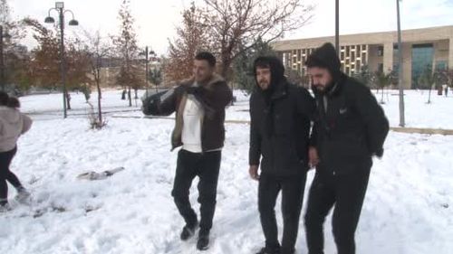 Şanlıurfa'da uzun aradan sonra etkili olan yoğun kar yağışı okulları tatil ettirdi; çocuklar kartopu oynayıp kardan adam yaptı, yetişkinler halay çekti.