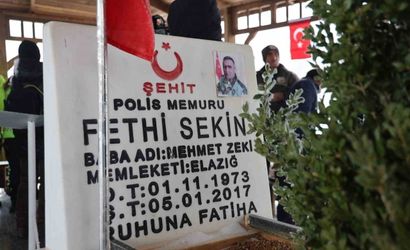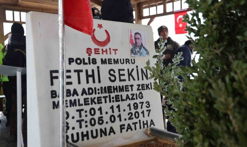 İZMİR'DE 9 YIL ÖNCE ADLİYE ÖNÜNDE PKK'LI TERÖRİSTLERLE KAHRAMANCA MÜCADELE EDEREK ŞEHİT DÜŞEN POLİS MEMURU FETHİ SEKİN, MEMLEKETİ ELAZIĞ'DA KABRİ BAŞINDA ANILDI
