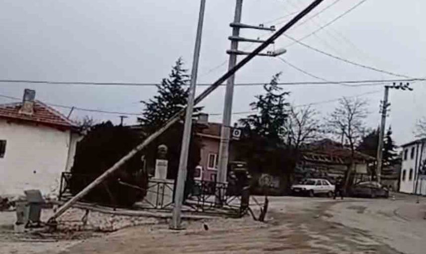 Eskişehir’in Seyitgazi ilçesi Ayvalı Mahallesi’nde, şehitlerin anısına dikilen 30 metre yüksekliğindeki dev bayrak direği, bölgede etkili olan aşırı rüzgara dayanamayarak devrildi.