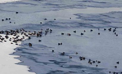 Erzurum’un Aşkale ilçesinde etkili olan Sibirya soğukları, bölgedeki yaban hayatını zor durumda bıraktı. Hava sıcaklığının gece eksi 35 dereceye kadar düşmesi nedeniyle Aşkale HES Baraj Göleti büyük ölçüde buz tuttu.