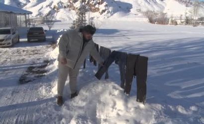 Kentte yaşayan Ahmet Kılıçkaya, akşam saatlerinde yıkadığı kıyafetlerini kuruması için evinin bahçesinde ipe astı. Sabah işe gitmek için uyandığında ise çamaşırların dondurucu soğuğun etkisiyle buz tutarak kaskatı kesildiğini fark etti.