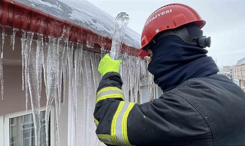 Sibirya soğukları Sivas'ta buz sarkıtı tehlikesi — İtfaiye müdahale etti