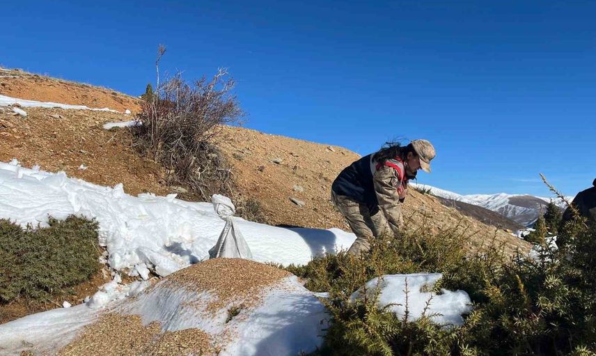 Siirt Doğa Koruma ve Milli Park Müdürlüğü ile İl Jandarma Komutanlığına bağlı ekipler, kış şartlarının ağırlaştığı bölgelerde yiyecek bulmakta zorlanan yaban hayvanlarına yönelik önemli bir çalışma yürüttü.