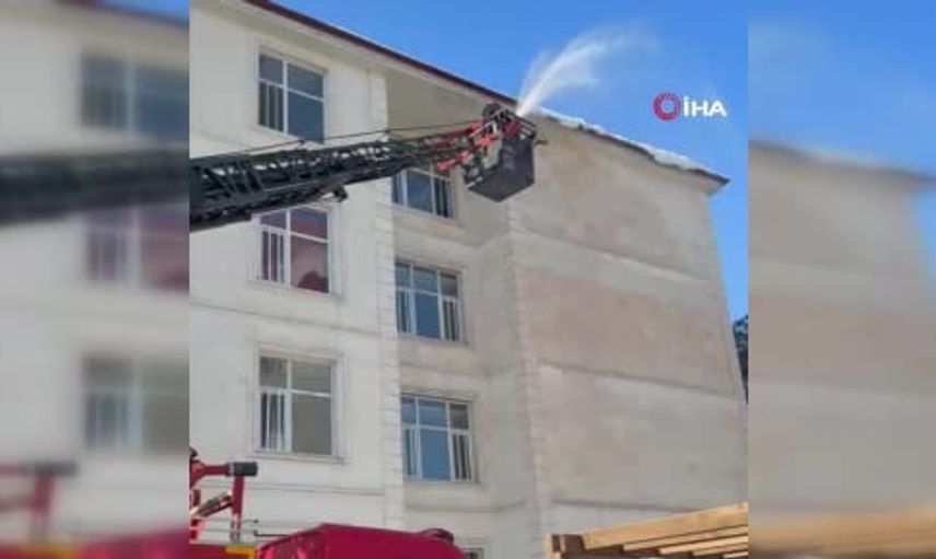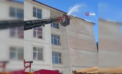 Siirt'te Çatı ve Saçaklardaki Kar Kütleleri İtfaiye Tarafından Temizleniyor