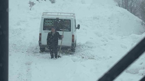 Siirt'te Karda Mahsur Kalan Öğrencilerin Minibüsü Kurtarıldı