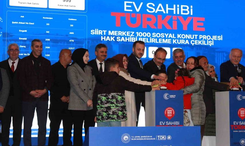 Siirt’te Cumhurbaşkanlığı himayelerinde; Çevre, Şehircilik ve İklim Değişikliği Bakanlığı koordinesinde hayata geçirilen "Yüzyılın Konut Projesi" kapsamında bin 627 hak sahibi, gerçekleştirilen kura çekimiyle belirlendi.
