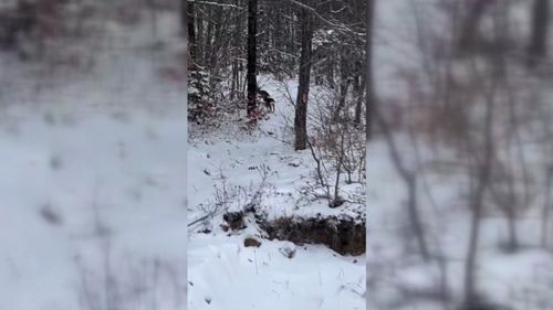 Sinop'un Ayancık ilçesi Çangal Dağı'nda iki karaca, karla kaplı arazide yiyecek ararken bir vatandaş tarafından görüntülendi.