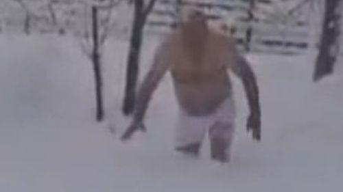 İstanbul'dan Sinop'un Değirmencili köyüne gelen Sadettin Özgenç, yaklaşık 40 santimetrelik kar üzerinde elbiselerini çıkarıp karda kulaç attı.