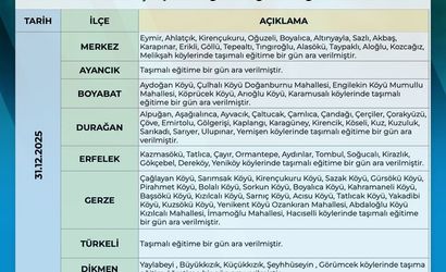 Valilik açıklamasında ayrıca, taşımalı eğitime ara verilen ilçe ve köylerde görev yapan engelli ve hamile kamu görevlilerinin 31 Aralık Çarşamba günü idari izinli sayılacağı ifade edildi.