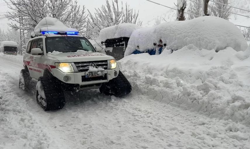 ŞIRNAK’TA İKİ HASTA İÇİN EKİPLER ZAMANLA YARIŞTI. 1 METRE KAR YAĞAN YOLDA ZORLU MÜCADELE.