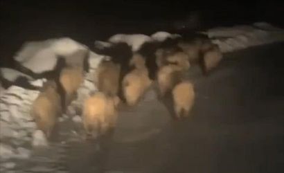 Görüntülerde hayvanların köy çevresinde yiyecek aradığı ve daha sonra gözden kaybolduğu görülüyor.