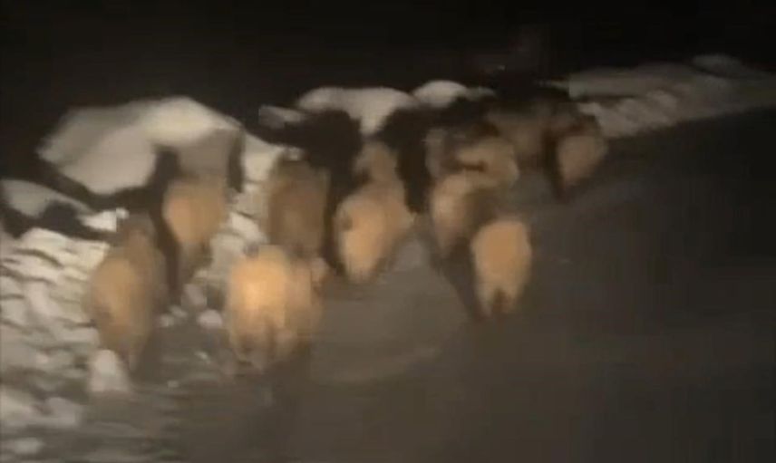 Şırnak'ta, çetin kış şartlarında doğal yaşam alanlarında yiyecek bulamayan domuz sürüleri köylere indi. Olay, Beytüşşebap ilçesine bağlı Günyüzü ve Beşağaç köylerinde yaşandı.