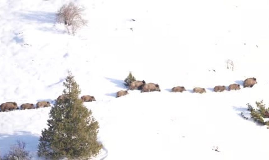 Sivas'ta -20°C'de suya giren domuz sürüsü görüntülendi