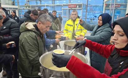 Sivas Belediyesi ekipleri ise karla mücadele çalışmalarını 7/24 esasına göre sürdürüyor. Seferlerin durdurulması nedeniyle terminalde beklemek zorunda kalan yolcuları yalnız bırakmayan ekipler, otobüs terminalinde vatandaşlara sıcak çorba ikramında bulundu.