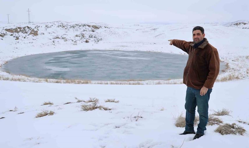 Tepeden bakıldığında gözü andıran bu iki göl, dron ile havadan görüntülendi ve beyaz örtüyle çevrili halleri fotoğraf tutkunlarının ilgisini çekti.