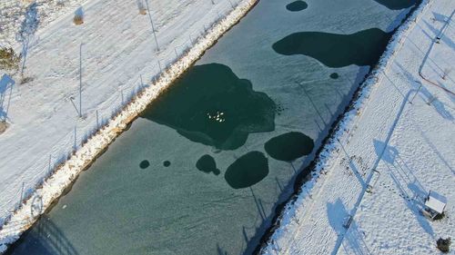 Sivas’ta Hasbahçe Göleti Kısmen Dondu — Ördekler Donmayan Kısımda Yüzüyor