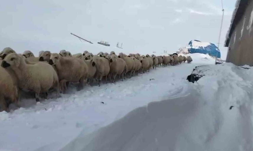 Sivas'ın Altınyayla ilçesi Altınyurt Mahallesi'nde yaşayan Ruşan Atalay, köy yollarının kar nedeniyle araç ulaşımına kapandığını, bu yüzden ağılına ulaşmak için ata binmek zorunda kaldığını anlattı. Atalay, atla ulaştığı ağıldaki küçükbaş hayvanları dışarı çıkarıp yemlediği anları cep telefonuyla kaydetti.