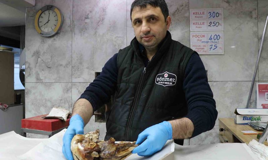 SİVAS'IN KIŞ SOFRALARININ VAZGEÇİLMEZ LEZZETİ KELLE, 16 SAATLİK ZAHMETLİ HAZIRLIK SÜRECİ VE TAŞ FIRINDA PİŞİRME TEKNİĞİYLE HEM YÖRE HALKINDAN HEM DE TURİSTLERDEN YOĞUN İLGİ GÖRÜYOR. ENERJİ VE ŞİFA KAYNAĞI OLARAK BİLİNEN DOĞAL KELLE, 300 LİRADAN SATIŞA SUNULUYOR.