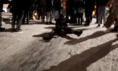 Vatandaşlar ateş yakıp tepsi ve plastik şişelerle buz üstünde kaydı
