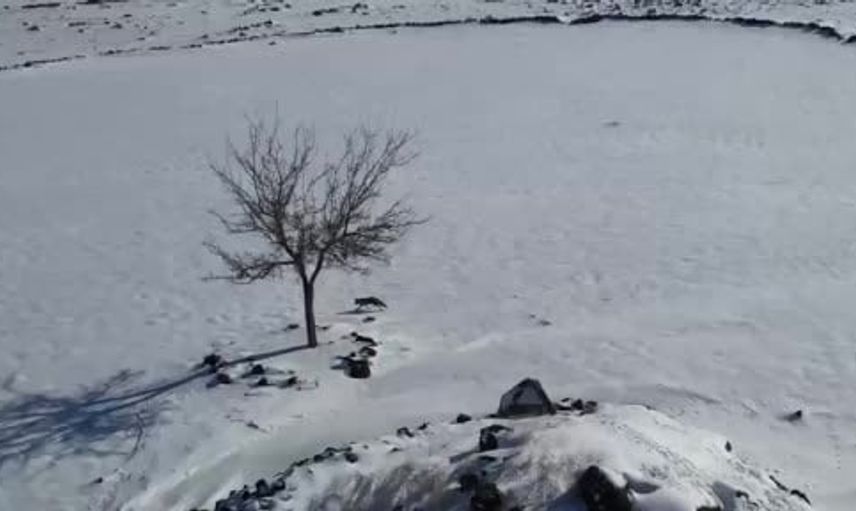 Karda ilerlemekte zorlanan tilki, bir vatandaş tarafından havadan görüntülendi. Dronu fark eden hayvan önce durup şaşkın bakışlarla etrafı inceledi, ardından paniğe kapılarak kaçmaya başladı.