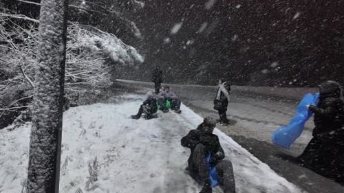 İstanbul'da yoğun kar yağışıyla beyaza bürünen Sultanbeyli Aydos Ormanı'nda, yarıyıl tatilindeki çocuklar kartopu ve karda oyunlarla doyasıya eğlendi.