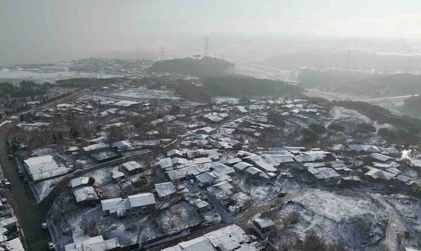 Aralıklarla süren yağış sonrası beyaza bürünen Sultangazi, oluşan görsel şölenle havadan görüntülendi.